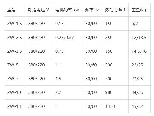 ZW-5附著式振動器參數(shù):