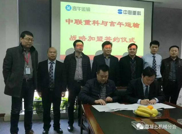 近日,中聯(lián)重科股份有限公司與南京言午運輸有限公司在江蘇南京舉行戰(zhàn)略加盟簽約儀式: