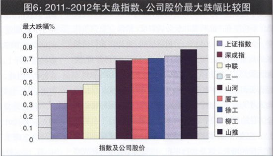 圖6 2011~2012年大盤指數(shù)、公司股價(jià)最大跌幅比較圖